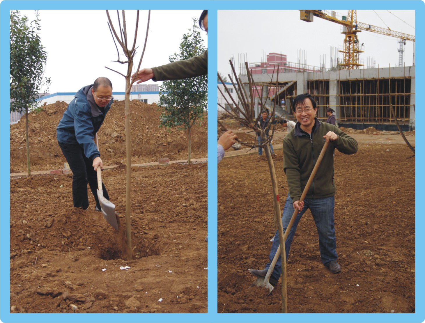 深秋时节,本是绿叶褪去繁华的时候,在公司新厂区,郁郁葱葱的盎然生机却悄悄进驻…… 为了将新厂区打造成“花园式工厂”,实现厂区绿化率95%、林木覆盖率12%、绿地率达40.5%的目标,公司在新厂区绿化建设上下了大功夫:将办公楼周围,厂房周围,园区各个通道旁都进行了专业规化,厂区计划栽种女贞、樱花、香樟、银杏、紫薇、龙柏、国槐等各种绿化树木,要铺设草地绿化带,建立四季有花开的“小花园”和健康绿色的“员工蔬菜基地”,使员工能处处感受到园林工厂的清新美好。 公司提倡员工每人亲手种植一棵树,用热情和关爱养好每一棵绿植。在号召下,大家纷纷动手,栽下木槿、红梅、合欢、紫荆,同时播种来年的希望:明年,这里将萌出更多更绿的芽,开出更红更艳的花,象我们的事业,发展壮大……